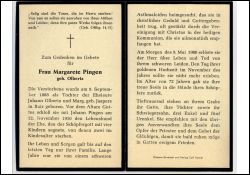 Eltern: Johann Olbertz u. Margarete geb. Jaspers; ∞ 12.11.1910 Johann Pingen; 4 K., davon 2 früh †; schweres Asthmaleiden; |