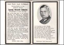 Gefallener 2. Weltkrieg; Eltern: Heinrich Schmitt u. Margarete geb. Schmitz; 1937 RAD, Herbst 1937 zur Wehrmacht; zunächst im Westen, dann im Osten |