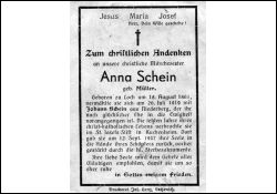 ∞ 26.7.1919 Johann Schein aus Niederberg; die letzten Jahre im St.-Josefs-Stift in Kuchenheim; Druck in Lechenich |