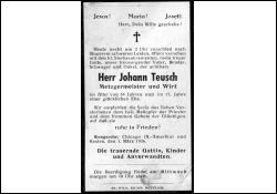 54 J.; Metzgermeister u. Wirt; im 17. Jahr einer glücklichen Ehe; Druck in Wittlich |