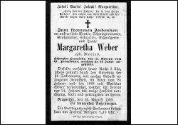 81 J.; ∞ 1848 Mathias Weber, † vor 24 J.; seit 43 J. Schwester Franziska des III. Ordens vom hl. Franziskus; Kinder; Druck in Wittlich |