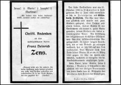 ∞ 12.6.1924 in Friesheim Elisabeth Fröhlich; 2 K.; lange Krankheit; Mutter † vor 3 Monaten; Druck in Lechenich |