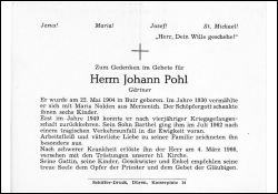 ∞ 1930 Maria Nolden aus Merzenich; 6 K.; kehrte erst 1949 aus 4jähriger Kriegsgefangenschaft zurück; Sohn im Juli 1962 † Verkehrsunfall); schwere Krankheit |