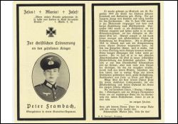 Gefallener 2. Weltkrieg; Eltern: Johann Frambach u. Katharina geb. Sistig; 15.6.1940 zur vWehrmacht eingezogen; Sept. 1942 als Kraftfahrer an die Ostfront; Pfingsten 1943 Heimaturlaub: Kriegstrauung seines älteren Bruders; Druck in Frechen |
