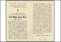 ∞ in Bachem 1910 Nikolaus Mies; 3 Söhne, davon 1 früh †; Druck in Horrem |