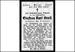 Langes Leiden: ∞ 25.11.1915 Karl Breil; 3 überlebende Kinder |