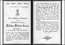 Veteran der Kriege 1866 und 1870/71; Schlaganfall; ∞ 23.2.1868 Maria Franziska Bardy; verschiedene Ämter im Gemeindeleben; 6 überlebende Kinder; Druck in Jülich |