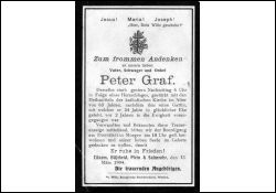 63 J.; Herzschlag; ∞ Anna Maria Neubürger, nach 24 J. Ehe † 1901; Kinder; Druck in Wittlich |