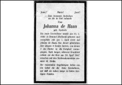 ∞ 7.4.1910 Johann de Haan; 8 K., davon 2 †; lange, schwere Krankheit |