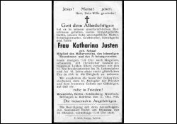 70 J.; im 43. Ehejahr; Mitgl Mütterverein, Lebendiger Rosenkranz u. Anbetungsverein; Druck in Wittlich |