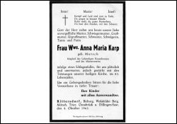 82 J.; Witwe; Mitgl. Lebendiger Rosenkranz u. Mütterverein; Schlaganfall; Kinder |