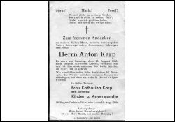 72 J.; langes Leiden; Ehefrau: Katharina geb. Sonntag; Kinder |