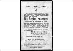 14 J.; Schülerin der höheren Töchterschule in Willich; Eltern: Martin Käsemann, Postmeister, u. Maria geb. Rech; Druck in Wittlich |