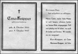 Ehemann: Kurt Knipper; Sohn Hermann; langes, schweres Leiden |