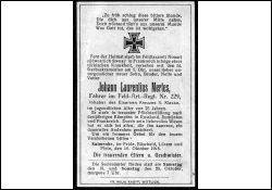Gefallener 1. Weltkrieg; 25 J.; nach dreijährigen Kmämpfen in Russland, Rumänien, Frankreich; Wohnort: Salmrohr; Druck in Wittlich |