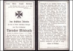 Gefallener 1. Weltkrieg; Einsatz in Russland u. im Westen; dreimal verwundet; fiel einer Krankheit zum Opfer; Druck in Kerpen |