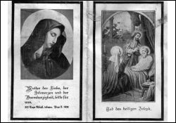 87 J.; ihr Gatte † vor 33 J.; Kinder; Mitgl. Mütterverein u. Lebendiger Rosenkranz; Druck in Wittlich |