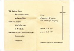 Kayser, geb. geb. Füngeling, verw. Schmitz | Vorname: |