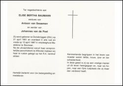 Swaemen, van, geb. Baumann, verw. van de Poel | Vorname: |