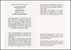 Ehefrau in 2. Ehe von Arnold Joseph Ruijters;1. Ehe mit Vincent Geilen; Exequien in Buchten, beigesetzt in Born |