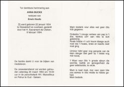 Witwe von Erwin H∞fs; Sechswochenamt in Oud-Geleen |