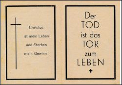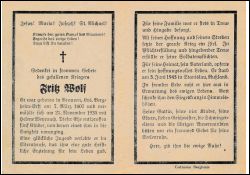 Gefallener 2. Weltkrieg; ∞ 25.11.1935 Helene Weyrauch; 5 K., davon 1 †; gestorben in russischer Kriegsgefangenschaft; Druck in Bergheim/Erft |