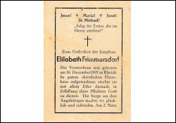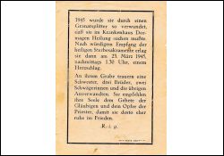 Opfer 2. Weltkrieg; beim Einmarsch der Amerikaner am 2.3.1945 durch Granatsplitter verwundet; Juingfrau; Druck in Bedburg/Erft |