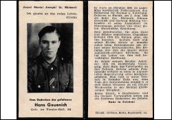 Gefallener 2. Weltkrieg; Eltern: Johann Geuenich u. Gertrud geb. Schlang; Bruder Adolf kurz vorher gefallen; Druck in Köln |