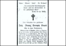 Gefallener 2. Weltkrieg; er diente 5 J. als Soldat; er starb bei der Verteidigung der Stadt Köln; ∞ 11.11.1944 Adelheid Odilia Hoffmann aus Rheidt, Kr. Bergheim/Erft |