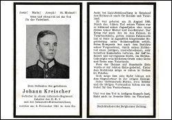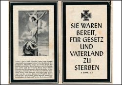 Gefallener 2. Weltkrieg; früher Tod des Vaters; Wohnort: Rheidt (Bergheim); Druck in Bergheim/Erft |