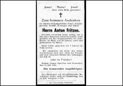 40 J.; längeres Leiden; seine Gattin Gertrud geb. Marx † vor 7 J.; Druck in Wittlich |