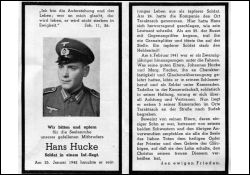 Gefallener 2. Weltkrieg; 21 J.; Einberufung 6.2.1941; Eltern: Johannes Hucke u. Margarete Fischer |
