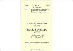 Ehemann: Fritz Köhntopp (*19.12.1922, † 29.12.1999); Wohnort: Bergheim/Erft; Druck in Oberaußem |
