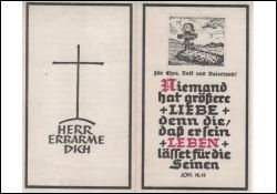 Gefallener 2. Weltkrieg; 1939-41 Forstlehre; 1942 eingezogen; Einsatz in Russland, Italien, Frankreich; Heldenfriedhof in Brectonville, 3 k. südwestl. Torigny |