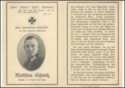 Gefallener 2. Weltkrieg; 21 J.; 2 Brüder an der Front; Febr. 1941 zum Wehrdienst; nahm teil an Kämpfen auf der Krim vor Sewastopol; Druck in Frechen |