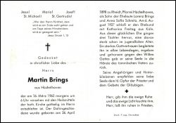 Wohnort: Hüchelhoven; Eltern: Lorenz Brings u. Anna Sofia geb. Schmitz; ∞ 6.8.1927 Katharina Freitag aus Köln; 3 Töchter, davon 1 jugendl. †; Druck in Oberaußem |