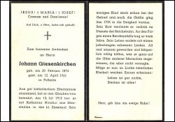 ∞ 13.7.1912 Katharina Nicolini aus Manstedten, † 1935; 1 K., bei Geburt †; im Dienste der Reichsbahn; jahrelanges schweres Leiden nach Berufsunfall |