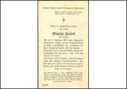 Längeres schweres Leiden; ∞ 7.7.1934 Adolf Probst; 1 überlebende Tochter; Wohnort: vermutl. Pulheim |