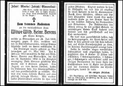 ∞ 4.2.1872 Wilhelm Heinrich Berens aus Oberaußem, † 15.9.1903; 4 K. |