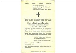 Ehefrau Anna Ferring; letzter Wohnort vermutl. Holsthum; Ehrenbürger von Kruibeke in Belgien; Druck in Trier |