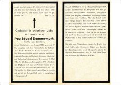 Eltern: Hermann Schnitzler u. Katharina geb. Dreesen; ∞ 31.12.1941 Kraftfahrer Eduard Dommermuth aus Baumbach b. Montabaur; ihr Gatte nach Kriegsende in franz. Gefangenschaft; Juli 1948 Rückkehr; 3 Töchter; tückisches Leiden |