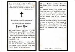 Jungfrau; leidend; Eltern: Wilhelm Heinrich Esser u. Adilia geb. Segger;; Vater vor 1 J. †; Druck in Rommerskirchen |