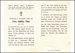 Eltern: Wilhelm Lütter u. Anna Maria geb. Stuckardt; ∞ 17.5.1919 Johann Flier aus Rheidt; 3 Töchter; Druck in Rommerskirchen |