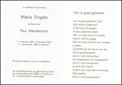 Mandersmit, geb. Engels | Vorname: |