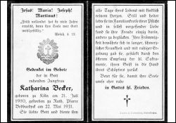 Jungfrau; lange, schmerzhafte Krankheit; Druck in Giesenkirchen |