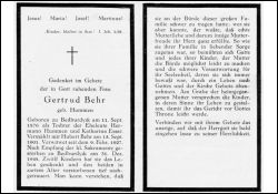 Eltern: Hermann Hummen u. Katharina geb. Esser; ∞ 15.9.1901 Hubert Behr, † 9.2.1927; 12 K., davon 2 früh † |