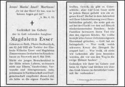 Jungfrau; Eltern: Wilhelm Esser u. Magdalena Zimmermann; nach der Schulentlassung zwei Haushaltstellen; die erste gab sie auf bei der Flucht vor den Bomben auf Rheydt; Druck in Rheydt-Giesenkirchen |