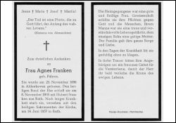 ∞ 8.11.1919 Hubert Franken aus Rath; 1 Sohn; lange Krankheit; Druck in Hemmerden |