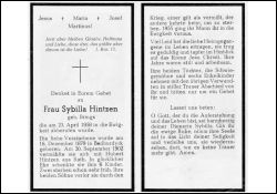 ∞ 20.9.1902 Hubert Hintzen aus Rath, † 1955; 6 K., 2 früh †; 2 Söhne im 2. Weltkrieg gefallen |