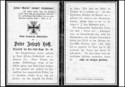 Gefallener 1. Weltkrieg; noch 3 Brüder und 1 Schwager im Heeresdienst; Druck in Grevenbroich |